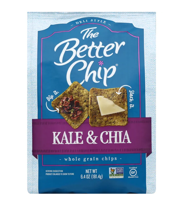 Deli style. Dip it. Stack it. Non GMO Project verified. www.nongmoproject.org. Certified gluten-free. Dips like a chip, stacks like a cracker. Made for better pairing & sharing. Be bold with your snacks. Each whole grain chip is packed with a delicious combination of farm-fresh kale and spinach and accented with garlic, onion and seeds for maximum flavor. These simple ingredients make the perfect chip for pairing with dips, meat, cheese other crowd favorites. Dip it or stack it, these chips make snacking fun and entertaining easy. Made with farm-fresh kale, spinach, garlic, onions & packed with Chia seeds.