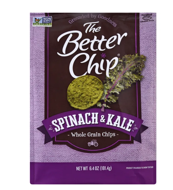 These chips are made from a simple, short list of recognizable, wholesome foods. You'll never find artificial flavors, colors, or preservatives on the label. The Better Chip uses extra virgin olive oil and avocado oil for healthy fats, and thoughtfully sourced spices like garlic, paprika, and sea salt to flavor the greens. Real food results in real nutrition and taste.